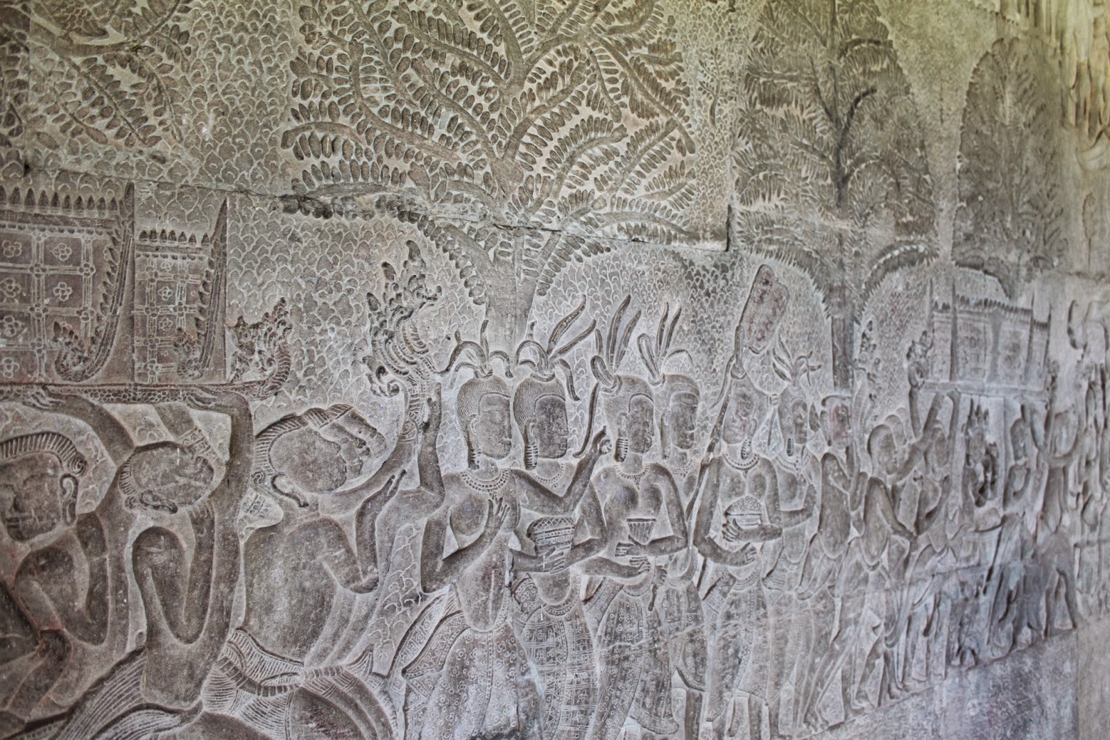 The inner complex is covered with historic art - beautiful, intricate rock carvings. Around the whole outer wall, there's a depiction of the King, battles and mythical creatures. Inside, you'll find depictions of asparas, Hindu gods from it's original design and Buddhist figures from the later conversion. The detail is incredible and unexpected.