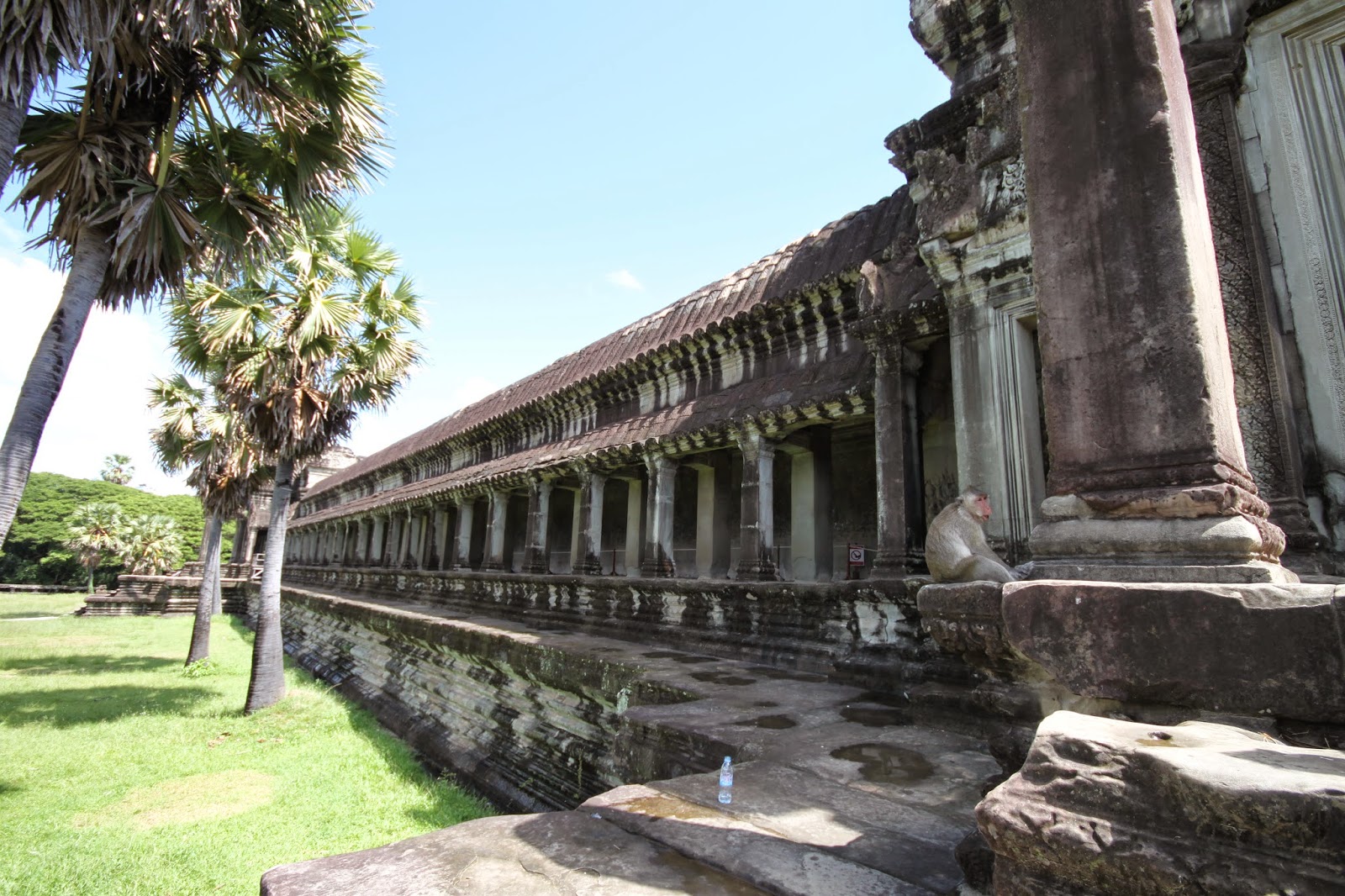 After getting our tickets to the Angkor complex, we followed the crowds into the temple, first over the moat, then through the first gate into the larger complex area. Even at 10 am, it was already hot and humid, especially given my maxi skirt and shoulder coverings. When we finally made it into the shade of the temple, I was first happy for the coolness, then after taking a moment to observe my surroundings, I was amazed.