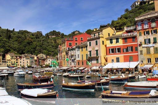 Around lunchtime, we escaped the crowds to head over to Portofino, famous for the rich (and famous) inhabitants. You can tell as you slowly pull into the boat filled harbour that the inhabitants aren't your run of the mill fishermen, as we saw yacht after yacht docked. We wandered the city some and settled for a lunchtime pizza, and wine of course.