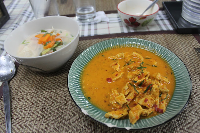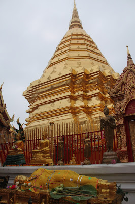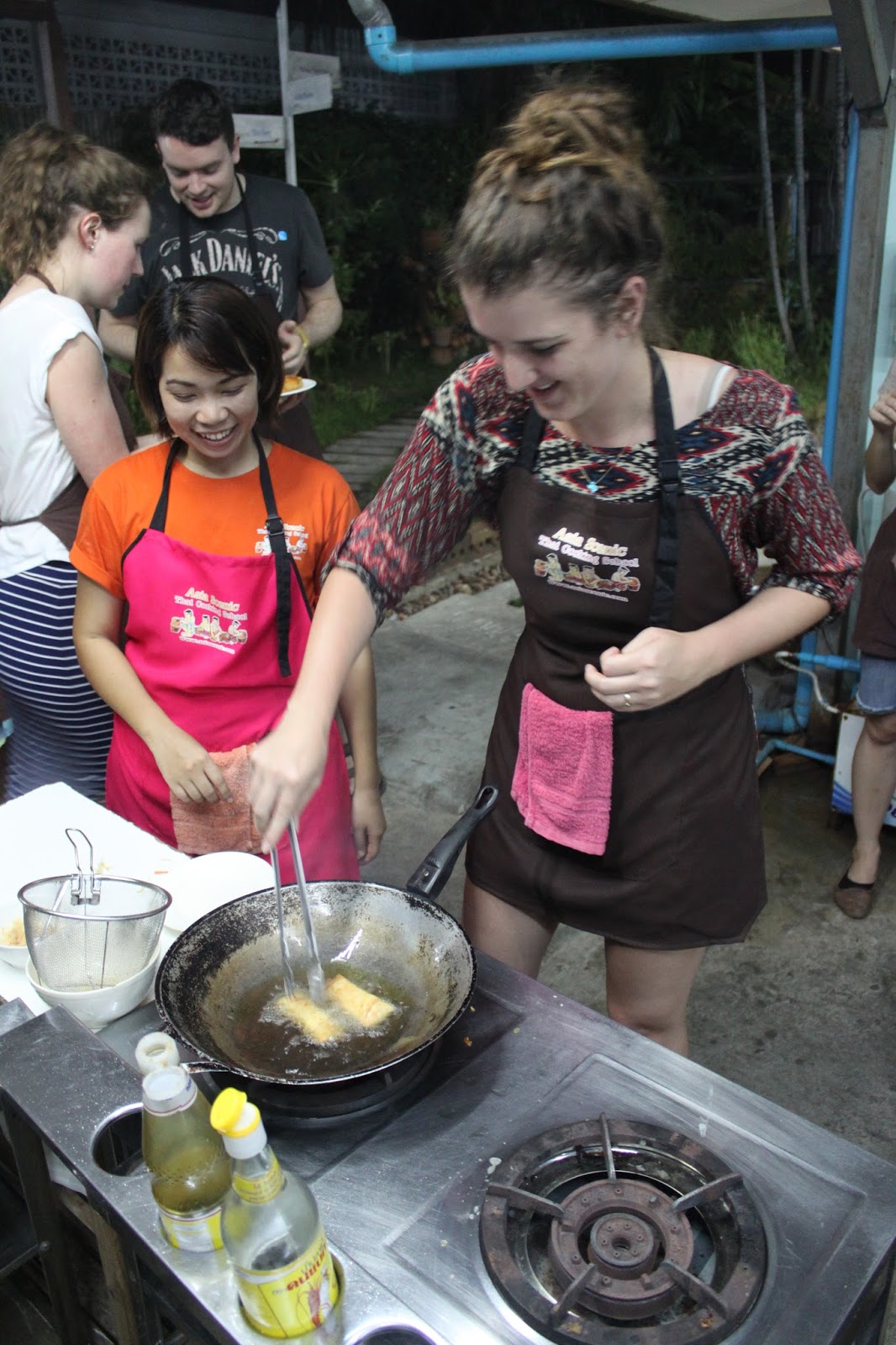 After our shopping, we headed back to the site to cook up our evening meal. It was quite the feast! We started with spring rolls, headed over to soup (coconut and tom yum), then made our main meals (pad thai and stir fried hot basil). For our dishes, we even made our own curry, grinding up fresh green chilies to make the paste. With our enthusiastic grinding, Paul managed to get some in his eye, rendering him out of commission for the rest of the grinding, and making me a bit hesitant to finish up the job! The finished product was worth it though - so delicious. We tried recreating the pad thai at home once we got back, only to find it just wasn't as good. Was it our cooking or the lack of farm fresh ingredients? I'd like to think our cooking wasn't to blame!