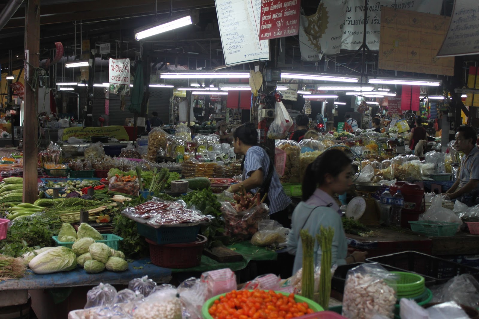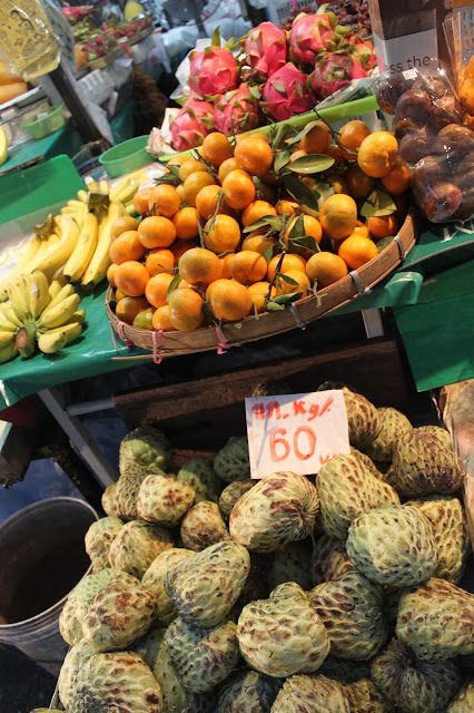 That evening we decided to skip the celebrations in order to better explore Thai food with a cooking class. For our first stop, we hit the markets to find the fresh ingredients we would need for all of our recipes. The markets were busy, filled with people shopping for their evening meals, and full of unusual fruits and veggies. I had my eye out for the famed durian fruit (said to reek of fish and is banned from many hotels and planes), but it was out of season so I was either fortunate or unfortunate depending upon your stance on the smelly fruit.