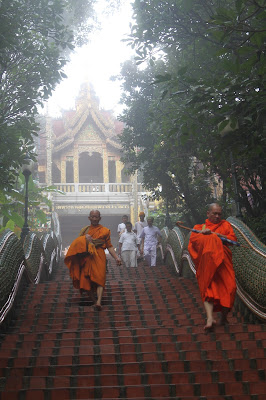 We arrived to a nearly empty temple clouded in fog with the only other early risers being the monks; all this combined created an almost mystical aura to our visit. We wandered the site hoping for the fog to clear, but eventually decided the weather wasn't in our favor.