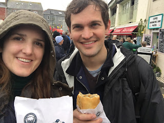 Before taking the ferry back, we queued up with half of the other revellers to get pasties (pronounced past-ees) from the Chough Bakery. Of course we made sure to get the true local variety with clotted cream and steak. As it was just starting to rain, everyone was vying for the same seats, so we decided to take the pasties to go for the ferry ride.